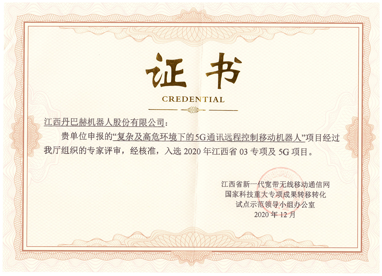 • 復雜環境5G通訊控制移動機器人證書