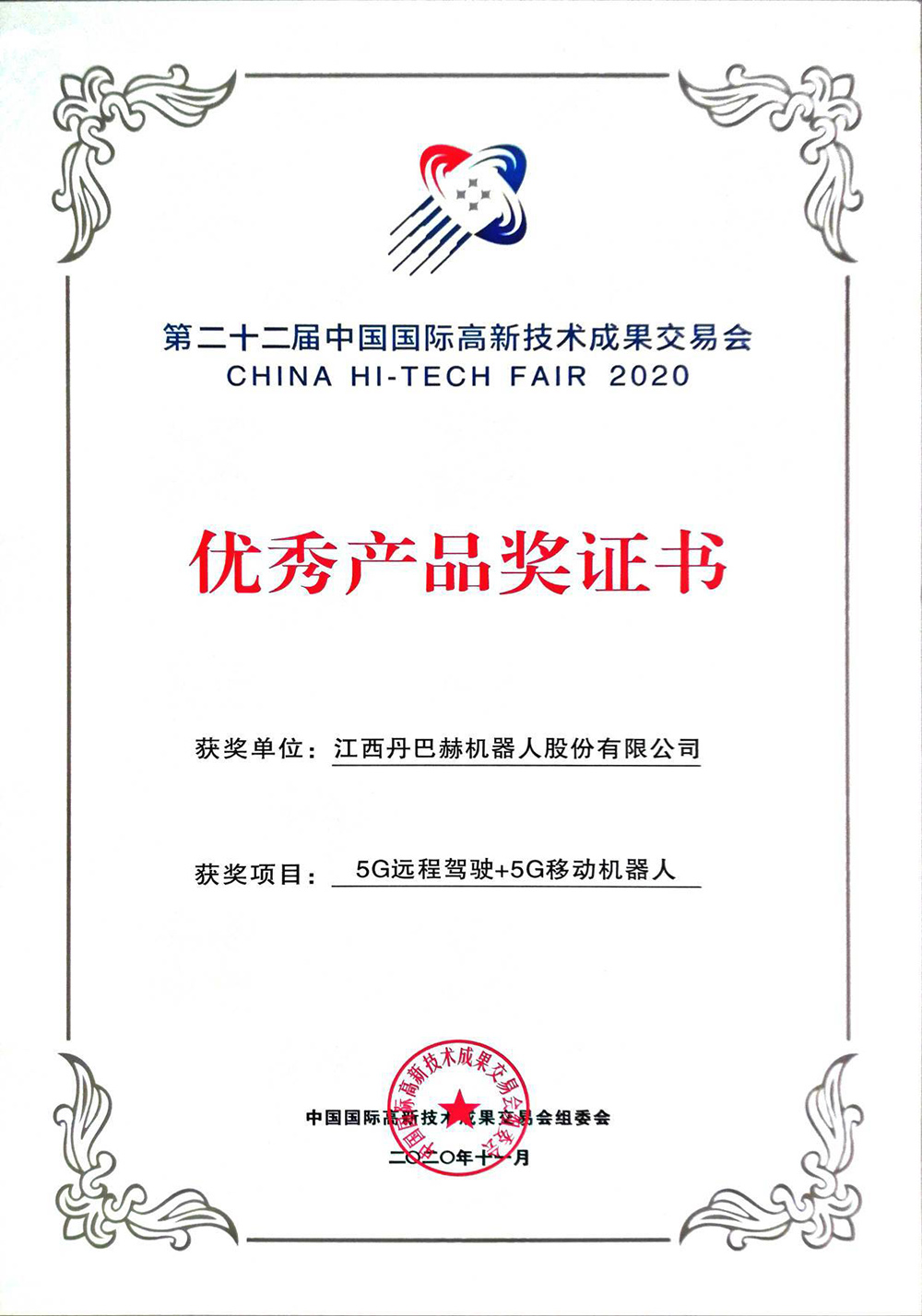 • 第二十二屆高交會優秀產品獎證書