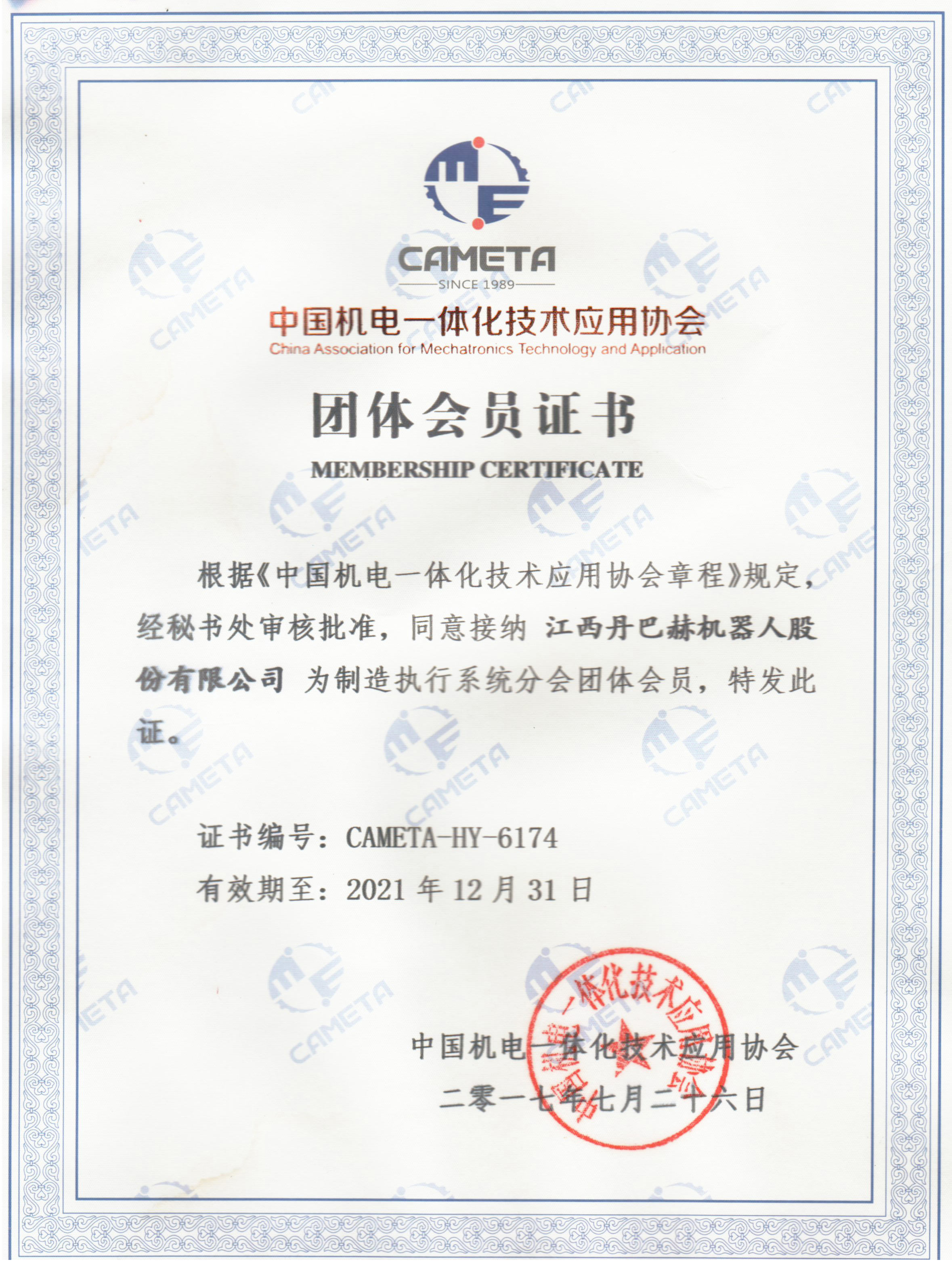 • 中國機電一體化技術應用協會證書